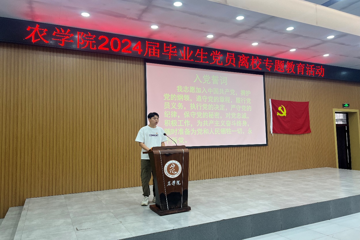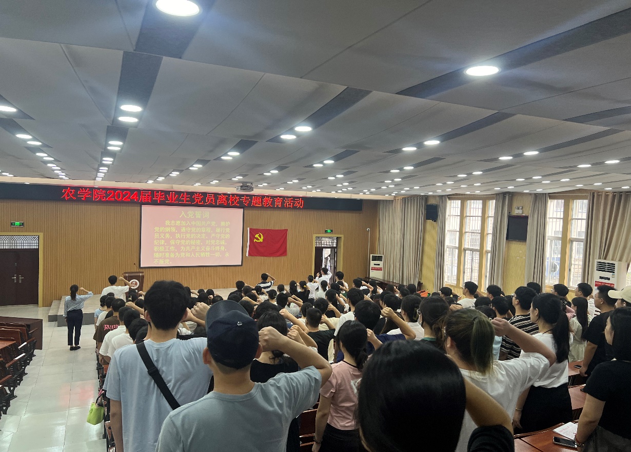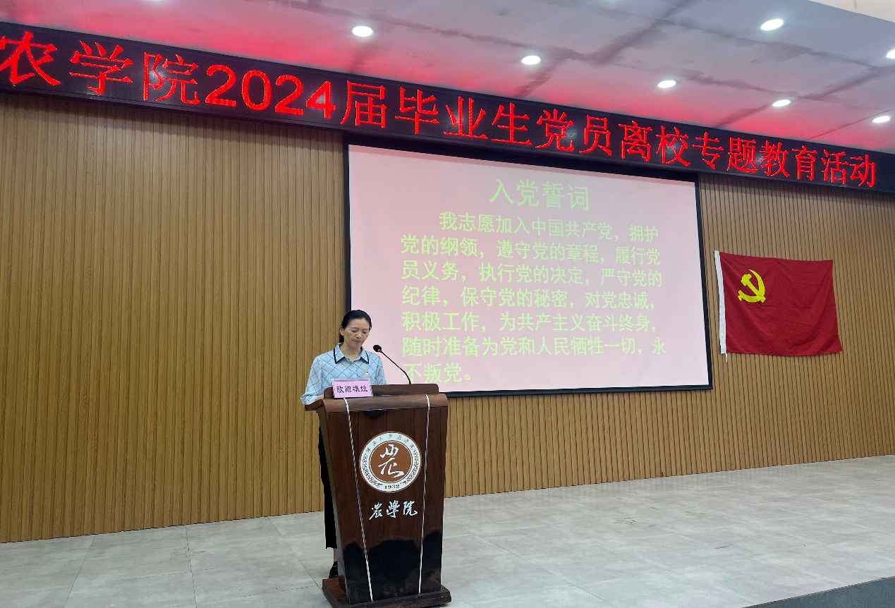在庄严肃穆的氛围中,全体毕业生党员重温入党誓词,叩问入党初心,牢记责任使命,增强毕业生党员的政治觉悟和党性修养。