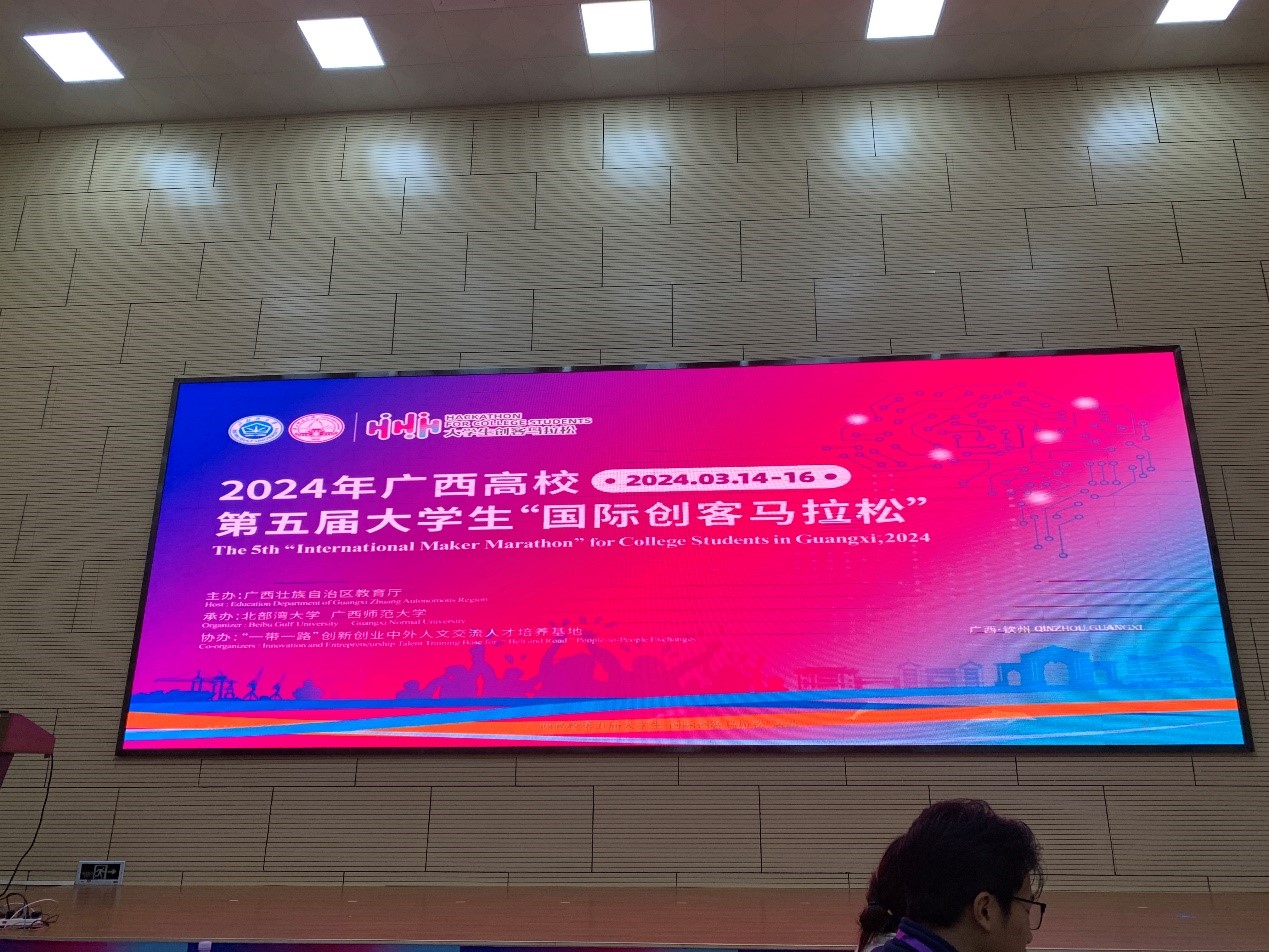 2024年3月14日—3月16日,2024年广西高校第五届老员工“国际创客马拉松”活动在广西钦州市北部湾大学成功举办。本次活动共吸引来自全区共61所高校,161名师生参与,其中包含本科生、研究生还有来自泰国、马来西亚、老挝、柬埔寨、刚果民主共和国、缅甸等8个国家21名职工同学们。