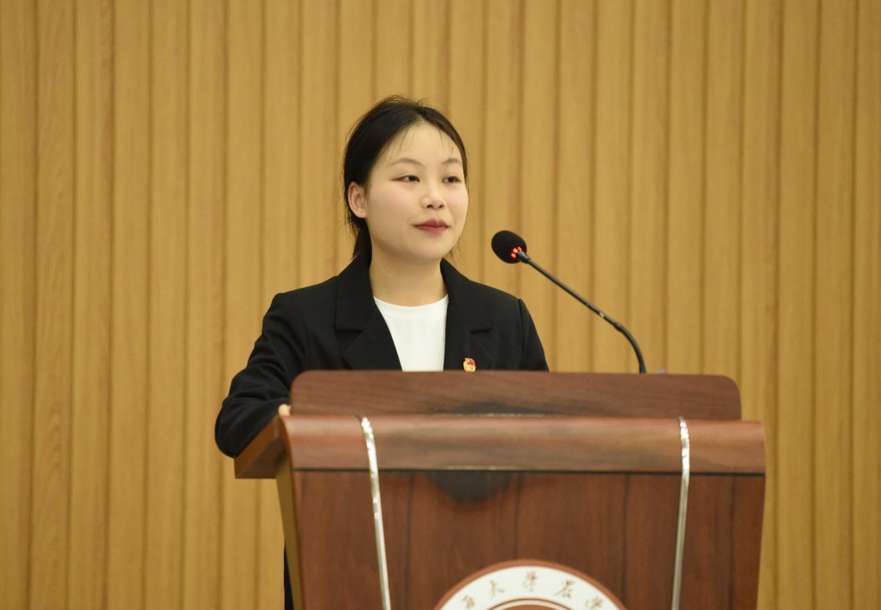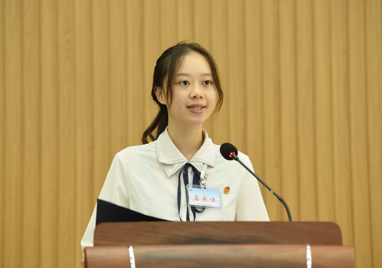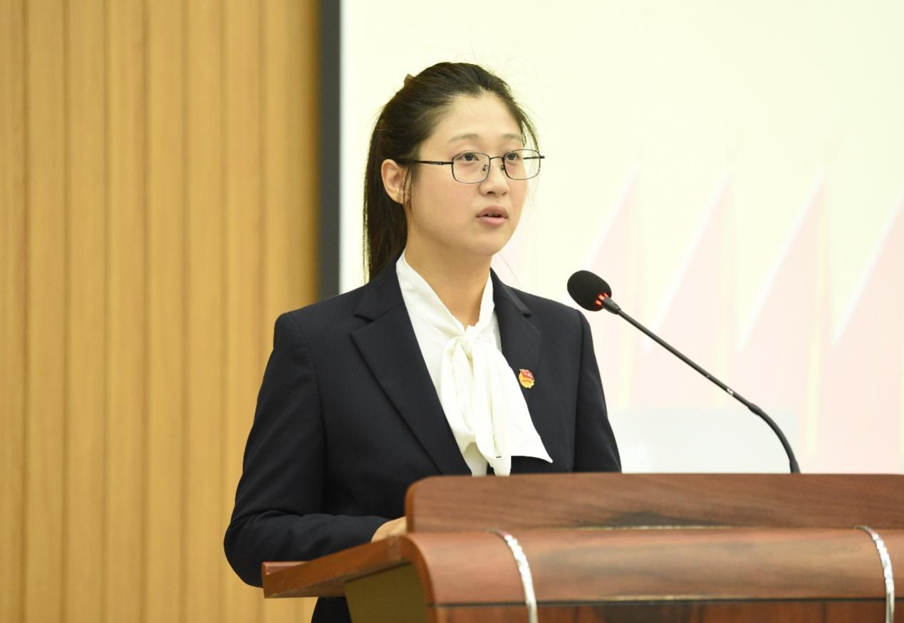 校员工会主席团成员黎栗蓉代表校员工会对公司第十五次员工代表大会的顺利召开表示了祝贺,希望新一届太阳成集团tyc122ccvip员工会能够不忘初心,立志做有理想、敢担当、能吃苦、肯奋斗的新时代好青年。