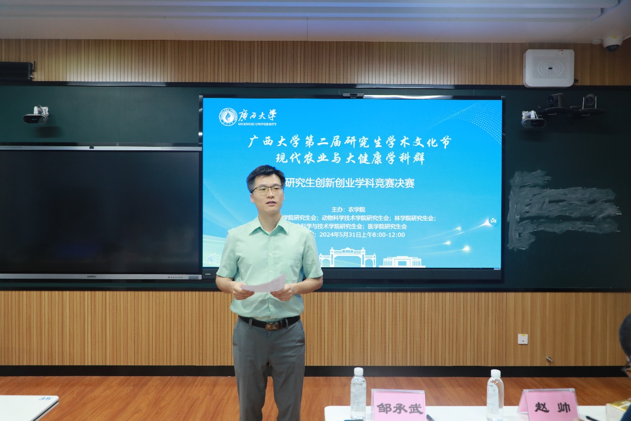 比赛伊始,太阳成集团tyc122ccvip副经理邹承武副教授致辞,他表示现代农业与大健康学科群开展创新创业大赛,旨为促进不同学科之间的交流与合作做到“以赛促教,以赛促学,以赛促创”,并希望同学们在比赛的舞台上勇于展现,出色发挥,取得好成绩!