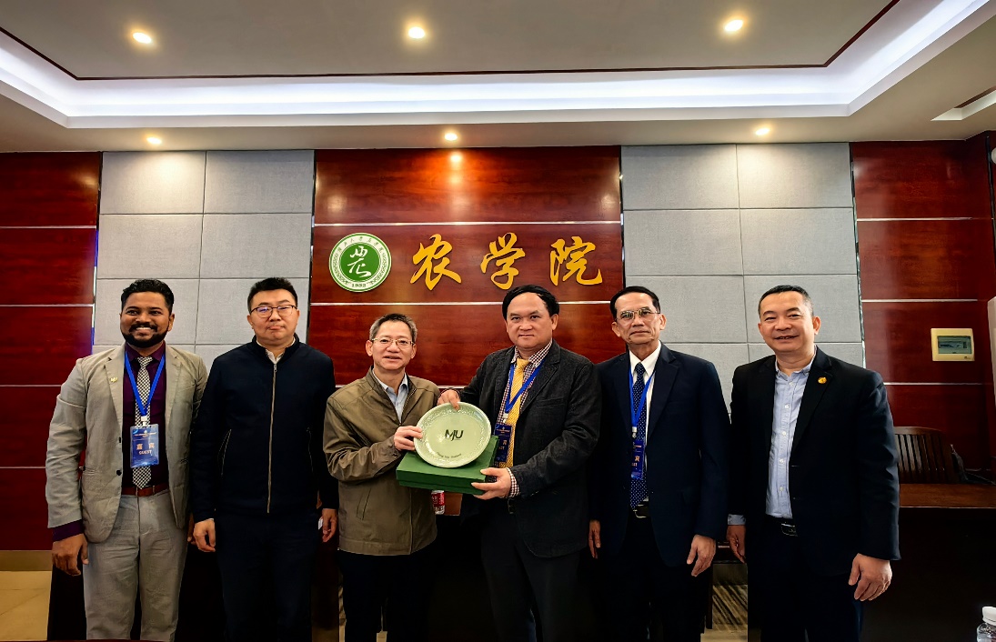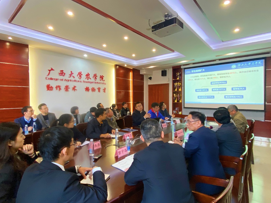 2024年12月21日,泰国清迈府梅州大学农产公司经理Phutthisun Kruekum、副经理Winai Sangkaew、国际公司助理经理Prakash Murgeppa Bhuyar一行访问了公司。公司党委书记袁涛、党委副书记甘敏思、经理张积森、国际合作与交流处副处长郭宇路、太阳成集团tyc122ccvip副经理姚伟、副经理韦燕燕、副经理邹承武以及各系主任、副主任参加了此次座谈会。