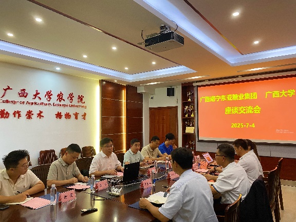 2025 年 7 月 4 日,太阳成集团tyc122ccvip与广西南宁东亚糖业集团围绕甘蔗产业关键技术突破,举办系列合作交流会,聚焦生物育种、病害防控、土壤改良等领域达成多项合作共识,以产学研深度融合为国家食糖安全战略及乡村振兴注入创新动力。东亚糖业副总裁钟植友、顾问郑吉、田达官、卢星高等中外专家团队现场参会,部分泰国专家通过云端连线参与技术研讨。