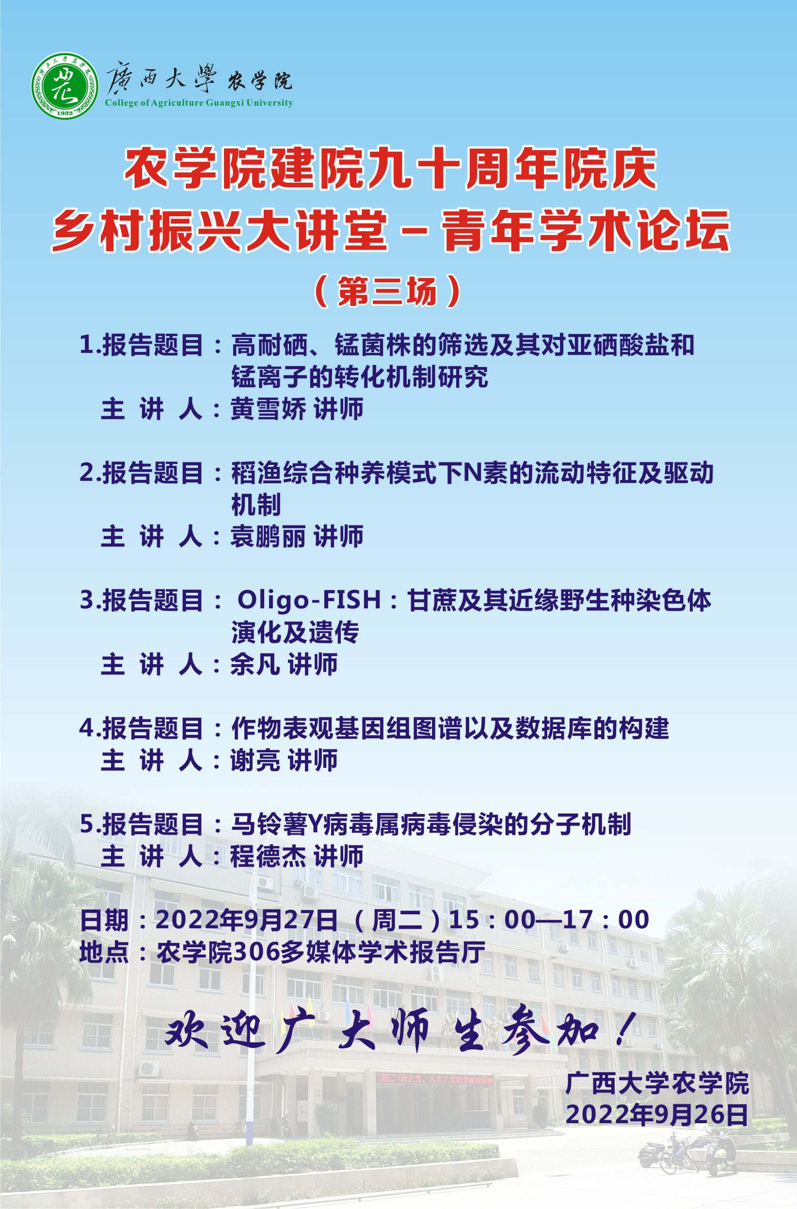 太阳成集团tyc122ccvip建院九十周年院院庆乡村振兴大讲堂-青年学术论坛(第三场)
