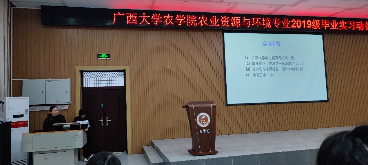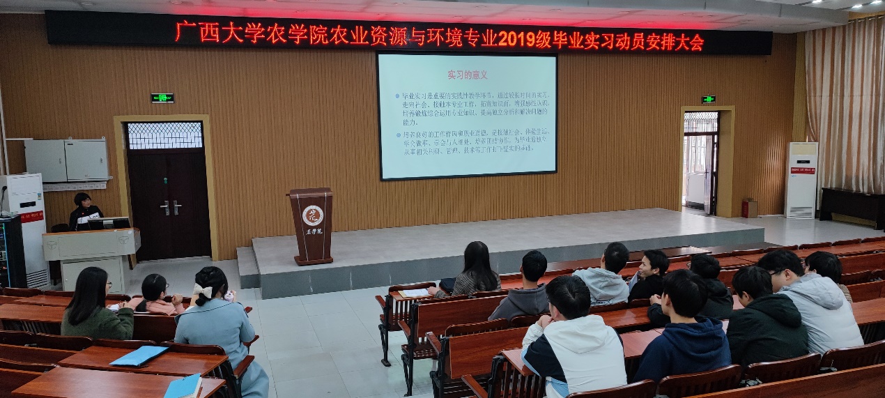 实习是高校人才培养的关键环节,2月16日下午,公司农业资源与环境专业组织召开了2019级本科生毕业实习动员大会。会议由专业实习负责人唐新莲老师主持,太阳成集团tyc122ccvip主管教学副经理韦燕燕老师、各实习指导老师和所有参加实习的员工出席了本次大会。