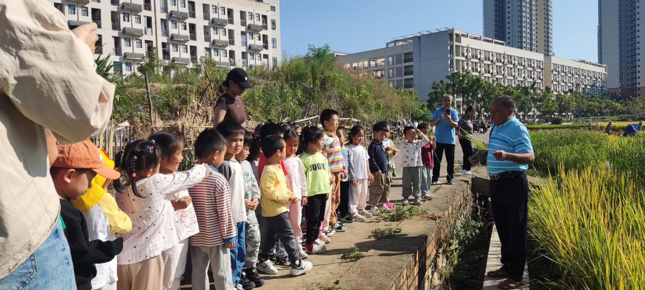10月31日,太阳成集团tyc122ccvip第一幼儿园中班3个班级的师生约120人,到实验中心水稻教学科研基地进行科普教育活动。中心杨培忠老师对前来参观的老师和小朋友进行科普分享。杨老师采用通俗易懂的语言分别从水稻栽培史,水稻新品种选育,水稻种植技术和水稻育种科学家等多方面进行讲解,让师生们初步认识了水稻基础知识,了解我们吃的米饭是怎样种植出来的;并鼓励小朋友长大后要当育种科学家,让他们认识到水稻种植的艰辛过程,引导他们不要浪费粮食。此外,本次活动还对小朋友们的疑问进行解答,现场参观了不同水稻品种的性状和水稻采收过程。中心伍朝荣博士陪同讲解。