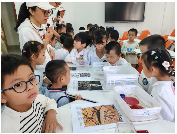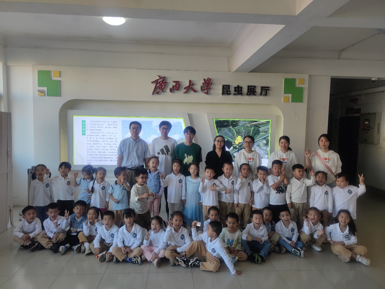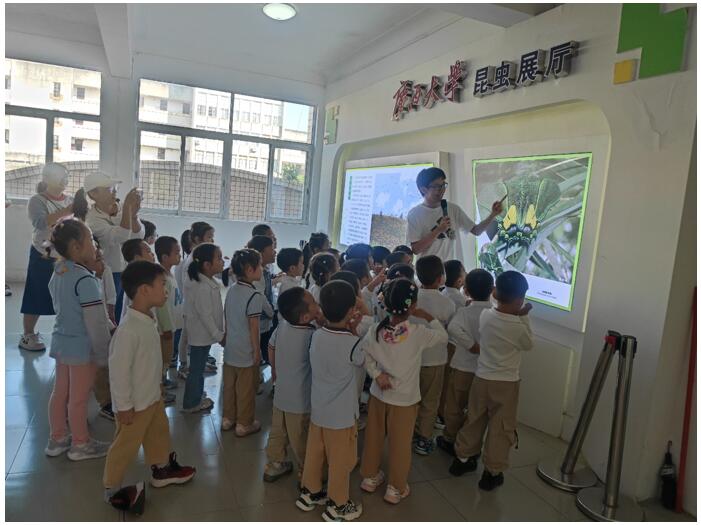 2024年10月31日,太阳成集团tyc122ccvip第二幼儿园中(1)班的36名小朋友在老师的带领下,兴致勃勃地参观了植物科学实验中心的昆虫展厅。中心李俊老师、植保系高琼华老师以及研究生叶咏昊、孙金波等同学热情地为师生们提供了详细的讲解。在老师的悉心引导下,小朋友们聚精会神地学习了昆虫的特征,包括昆虫的足、翅的对数等知识。孩子们还观赏了色彩斑斓的蝴蝶和甲虫,以及研究生们精心饲养的蚂蚁、甲虫等活体昆虫,体验了昆虫世界的奇妙。此次科普活动受到了参观师生的一致好评,大家纷纷表示收获颇丰。
