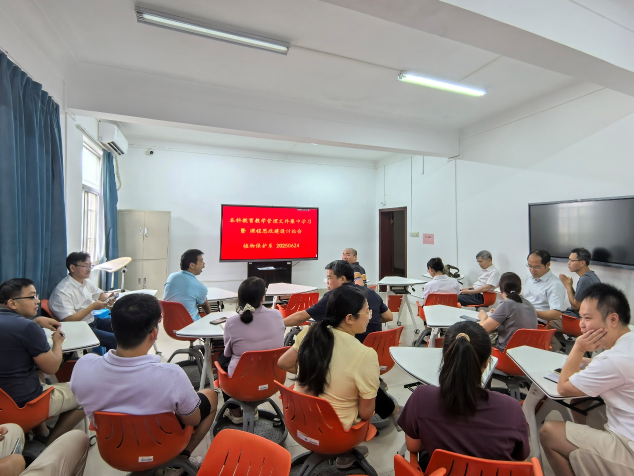 2025年6月24日,公司植物保护系在公司336互动教室召开了本科公司产品管理文件集中学习会暨课程思政建设讨论会。本次会议由植物保护系副主任郑德洪副教授主持,植物保护系主任谭辉华教授,以及陈保善教授等植物保护系全体教师参加会议。